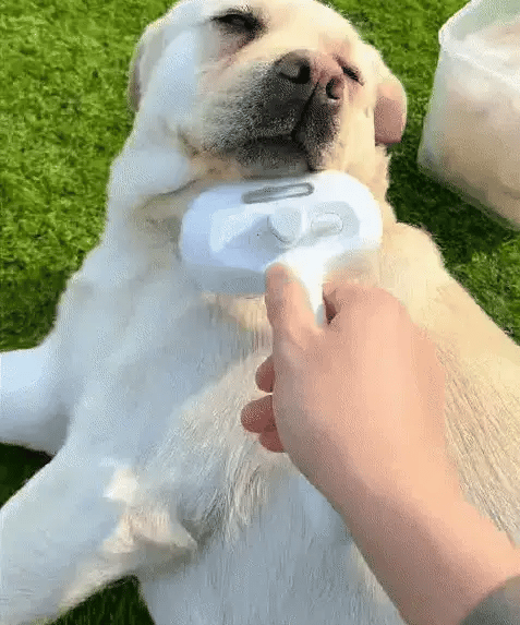✔️ כלב מרוצה שנהנה מהעיסוי – סוף סוף מסרק שהוא אוהב.